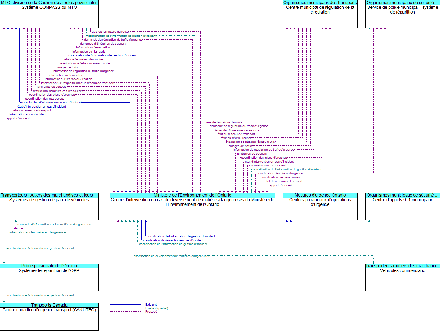 Diagramme de contexte - Centre d’intervention en cas de déversement de matières dangereuses du Ministère de l’Environnement de l’Ontario