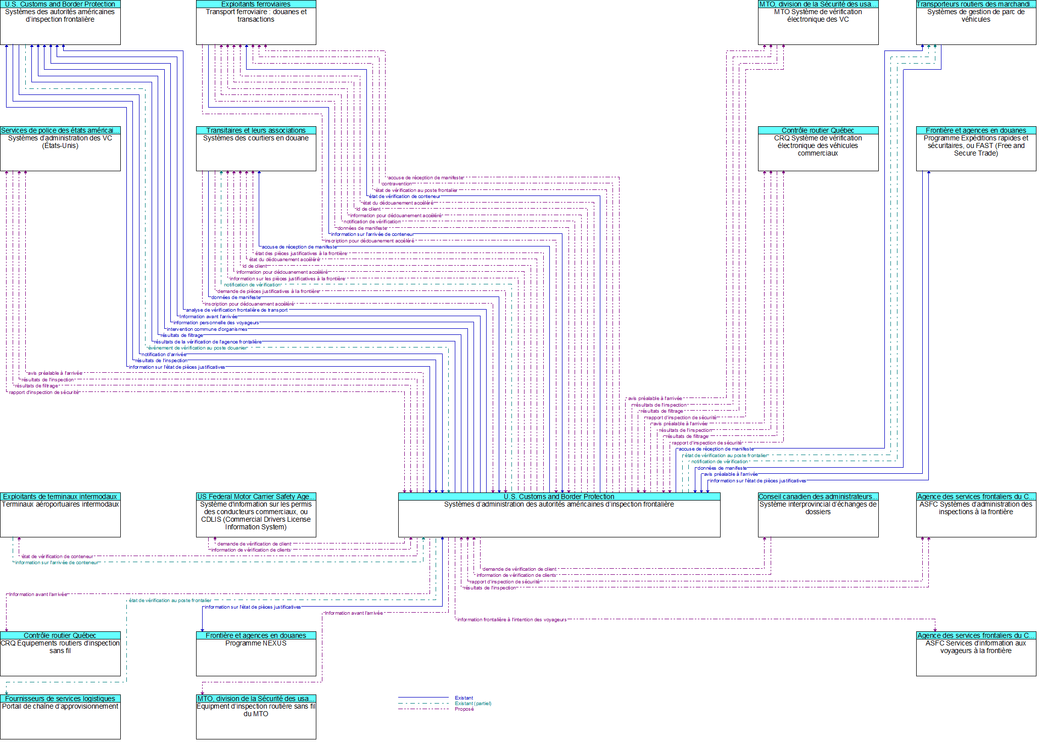 Diagramme de contexte - Systèmes d’administration des autorités américaines d’inspection frontalière